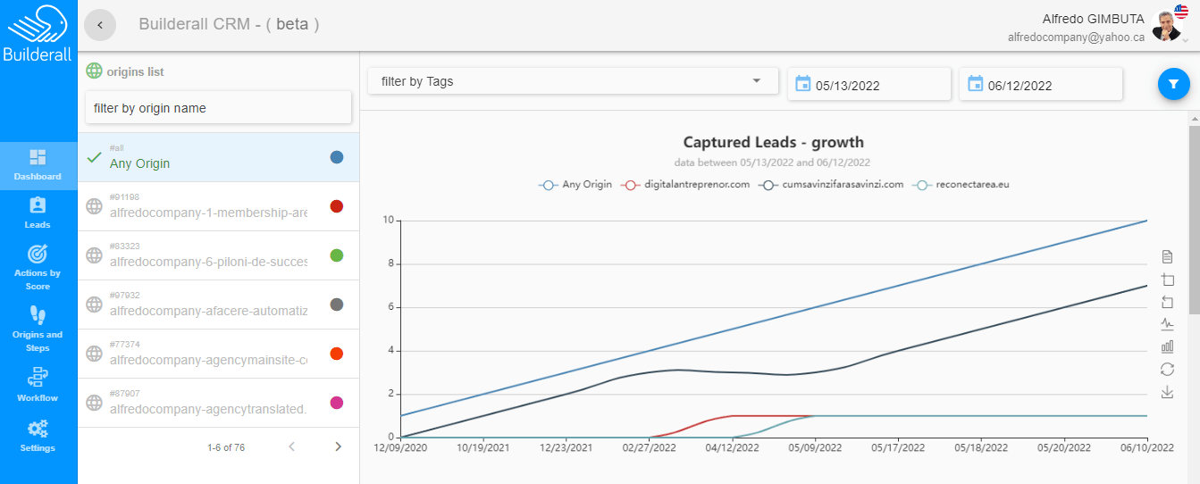 Builderall are încorporat un sistem CRM care este cu adev?rat puternic ?i ajut? s? urm?re?ti, s? etichetezi ?i s? automatizezi ac?iunile pentru fiecare pas pe care vizitatorii t?i îl fac în pâlniile tale de vânz?ri.